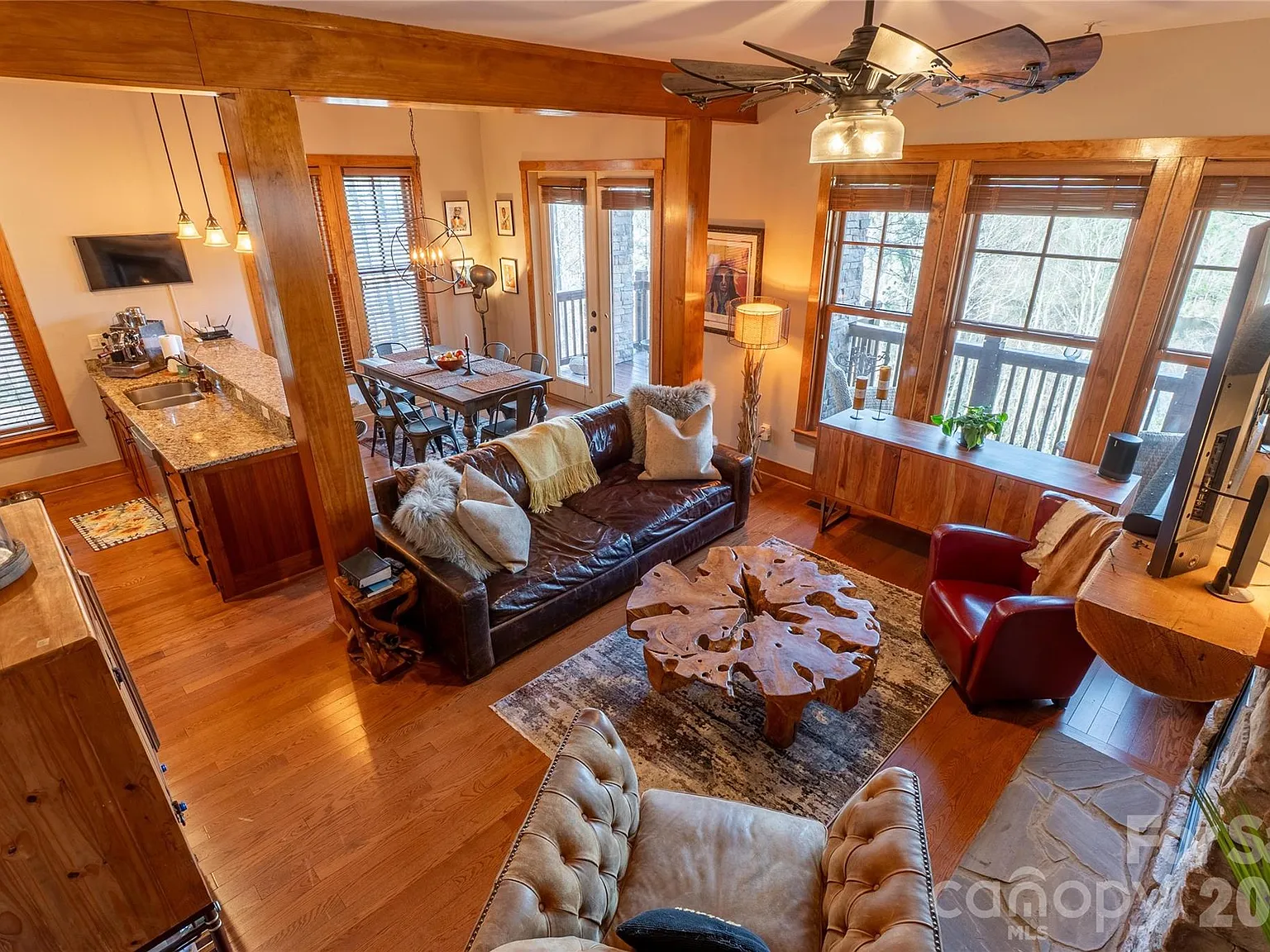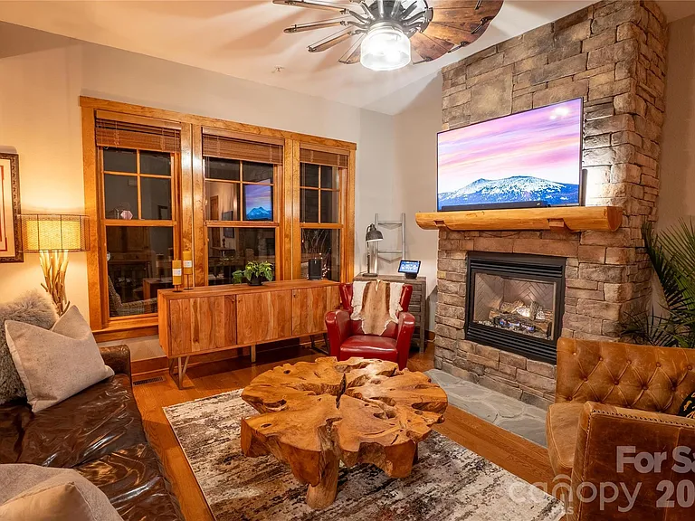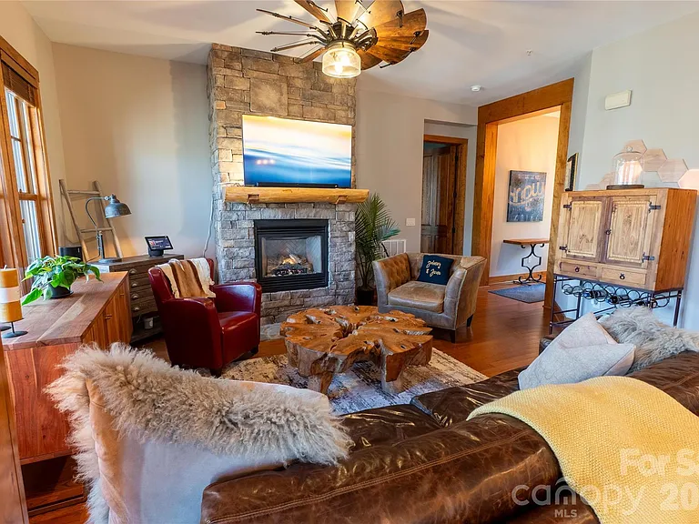 Upon entering this brand new listing at 100 Saddle Notch Lane A-1, take a deep breath of fresh mountain air. This condominium boasts an incredibly unique open space, living design and two bedrooms and two bathrooms. The open floor plan offers breathtaking mountain and lake views. A hidden gem that provides a peaceful, serene and inspiring living experience in the heart of stunning Bear Lake Reserve. From the moment you step through the door you’ll feel at home. Lush upgraded lighting, appliances and the option to purchase fully furnished or customize this one-of-a-kind private oasis. Sip something good while you cozy up and watch nature unfold in front of you. The rich wood trim and cabinets along with ample natural light, give this space is “all-for-seasons” charm and spa-like feel. This meticulously curated home offers unparalleled comfort and luxury. With a simple touch, a warm log fireplace provides a cozy ambiance, perfect for unwinding after a busy day of outdoor adventures.The property serves as an ideal venue for entertaining guests or savoring the tranquility of nature, with its proximity to serene woods and tranquility waters. Residents of this amenity-rich community will find themselves with an abundance of opportunities for outdoor recreation. Hiking scenic trails near picturesque natural springs and rushing creeks, golf the exclusive Jack Nicklaus-designed nine hole course while taking in the breathtaking beauty of the Blue Ridge Mountains, or engaging in a friendly match of tennis or pickle-ball are just of the few activities available. Bear Lake, the crown jewel of the property offers a plethora of water-based activities, including paddle-board, kayaks, water skiing, boating and fishing, A private Marina ensures that the lake life is effortless. Indulge in the serene ambiance of the Lake Club Resort, where exquisite dining awaits at its finest. Savor the flavors of a casual Tap Room, and delight the youngest members of your family with a menu crafted for discerning palates. For those seeking a active lifestyle, the state-of-the art fitness center offers a comprehensive range of amenities, including a sauna and steam room. Savor refreshing cup of coffee at the Bear N Bean Shop, where the freshest roasts from Blue Ridge Bootleg Coffee are used. If “you’re not a full-timer” or “wanting a full time residency preference, considering renting the this beautiful condo on the resorts rental program, allowing it to generate income for you. Experience the ultimate in the all-inclusive heavenly haven and realize your mountain get-away dream. Please click on the video for more details.